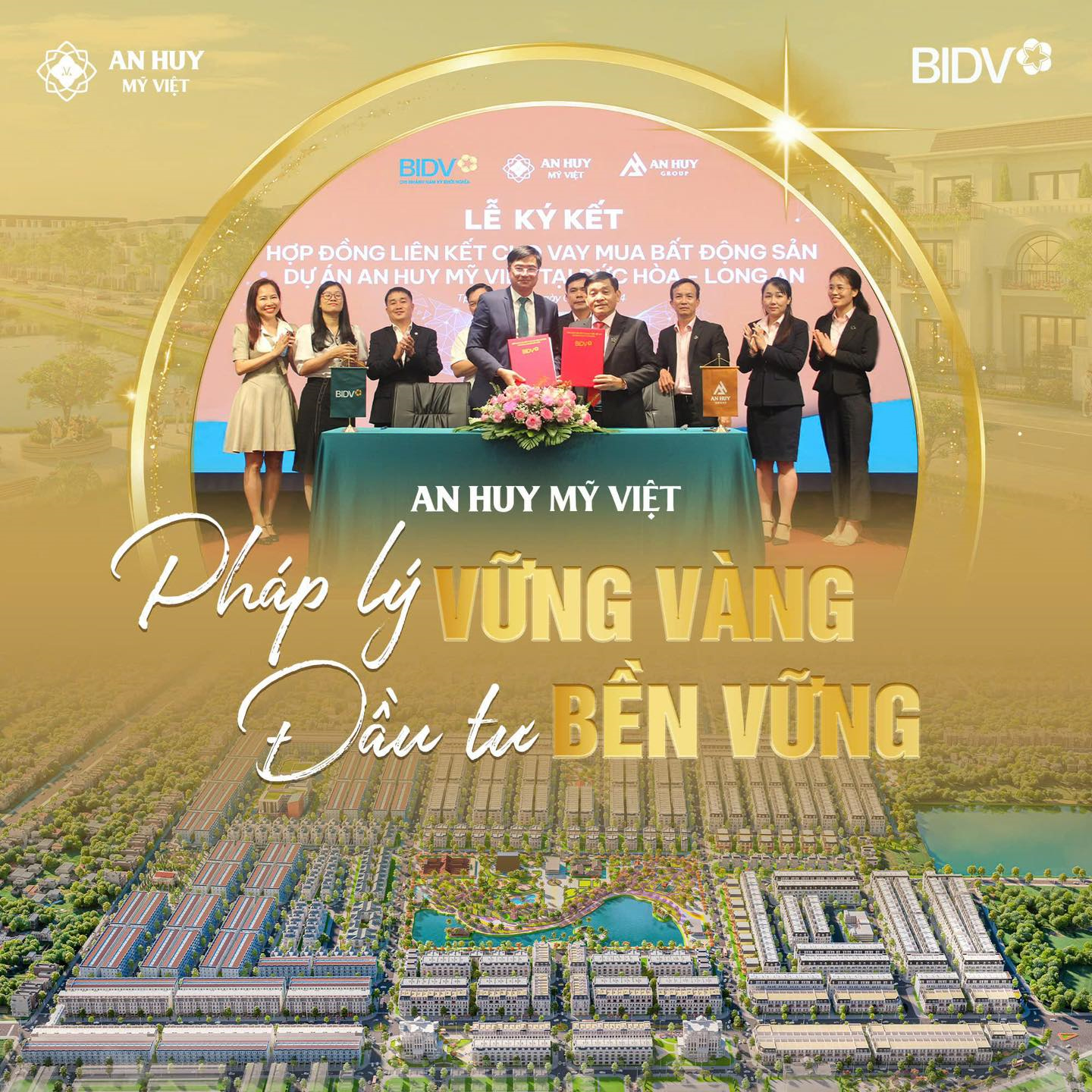 Dự án An Huy Mỹ Việt Long An nhận được sự hỗ trợ trực tiếp từ ngân hàng BIDV. Đảm bảo mang đến cho khách hàng mức lãi suất thấp nhất và những ưu đãi đặc biệt mà không phải dự án nào cũng có.